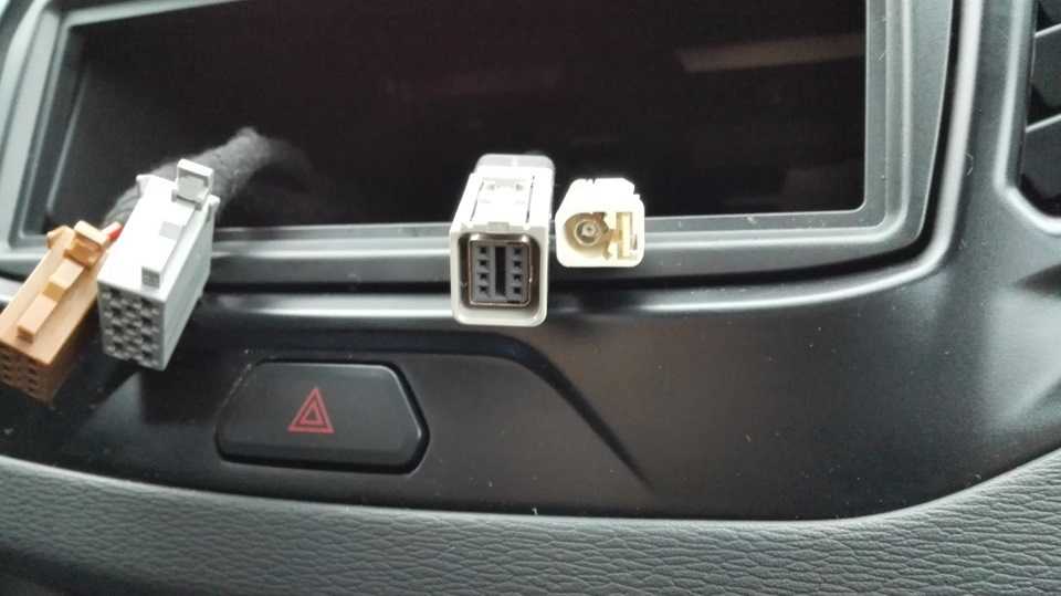Чтобы снять заглушку магнитолу нужно аккуратно поддеть ее снизу, а затем отщелкнуть фиксаторы. Под ней находятся разъемы: ISO, FAKRA (антенна), USB и AUX.