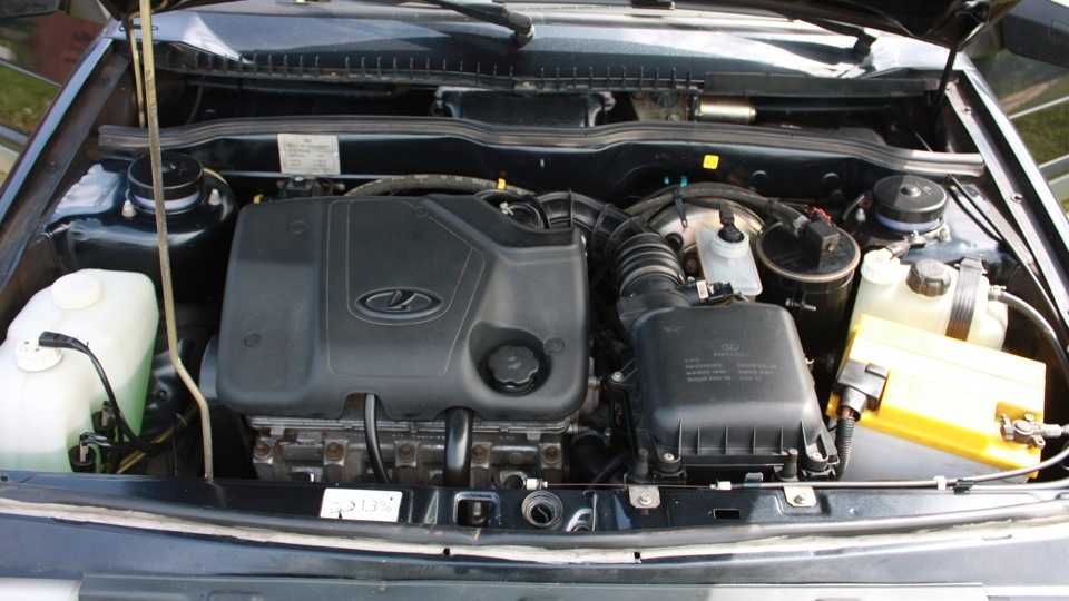 Моторный отсек автомобиля ВАЗ-21104 с шестнадцатиклапанным двигателем рабочим объемом 1,6 л