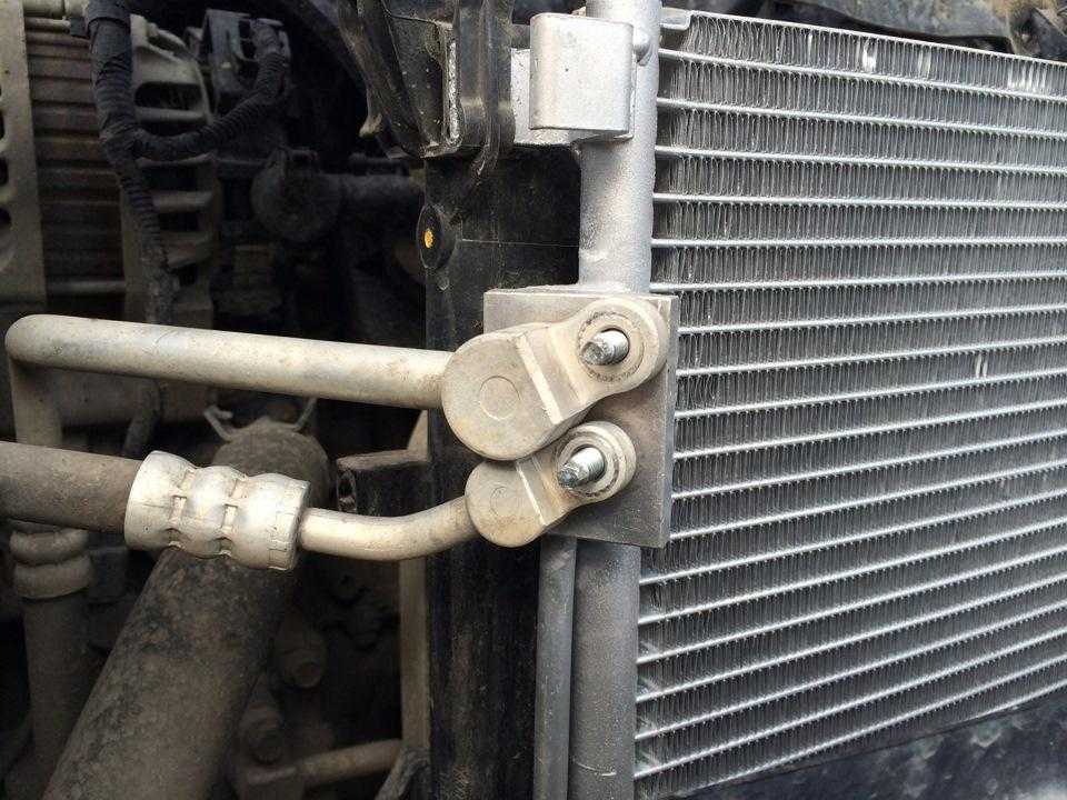 - Напоследок внимательно осмотрите стыки и видимую часть конденсора на предмет масляных потеков, свидетельствующих о разгерметизации системы.