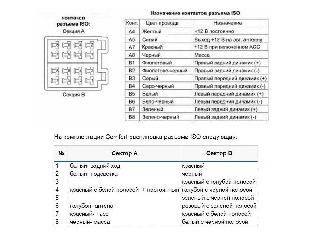Чтобы самостоятельно подключить магнитолу, необходимо знать, куда подается питание, где выводы на динамики. Для заинтересованных даем распиновку этого устройства.